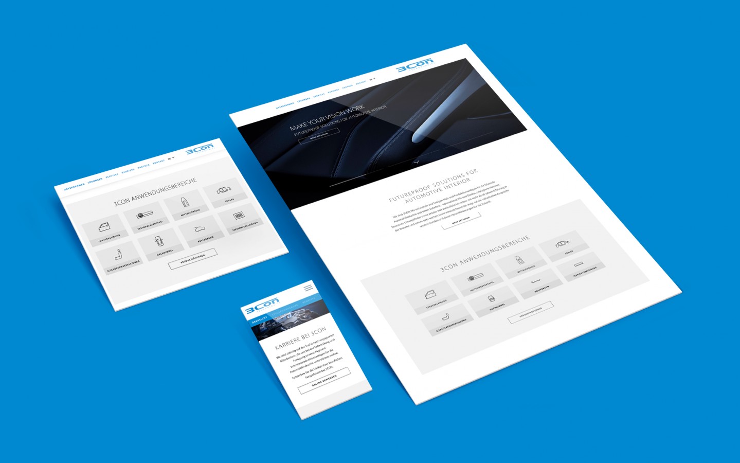 Die 3CON Company ist spezialisiert auf die Fertigung von Interieur-Produktionsanlagen für die Automobilindustrie und zählt in diesem Bereich zu den Weltmarktführern. Das Leitmotiv des Unternehmens „Make your vision work“ sollte sich auch in einem modernen Online-Auftritt repräsentieren.
